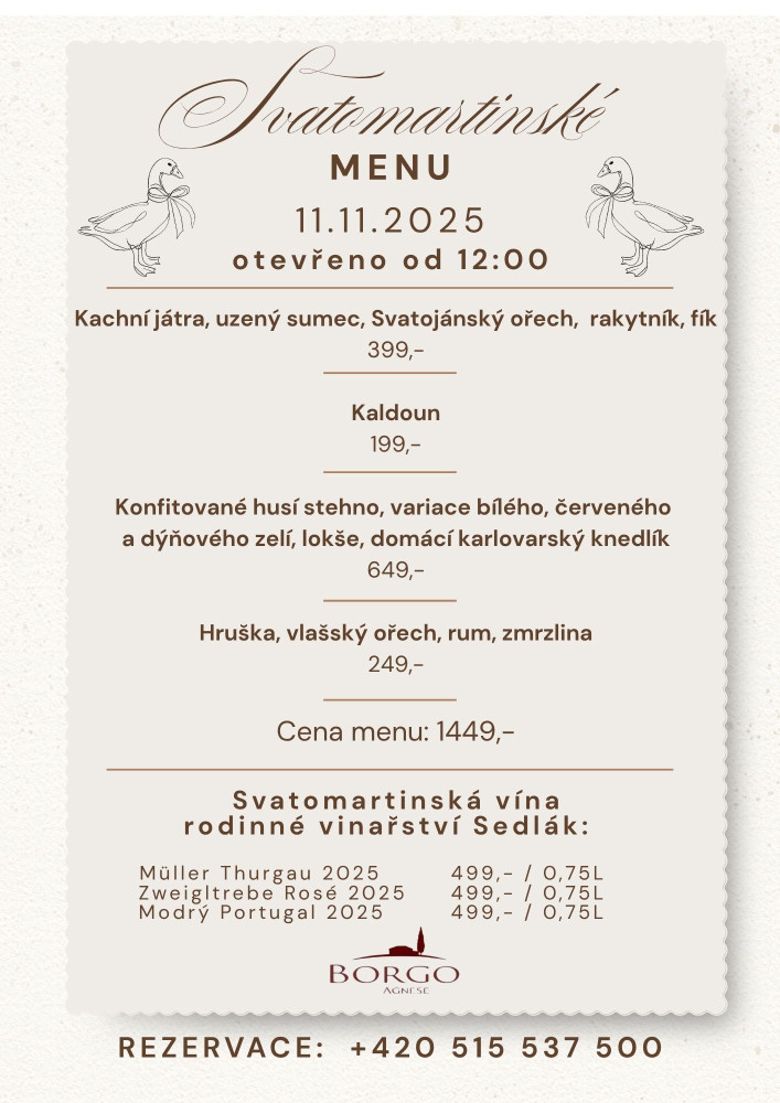 11.11.2025 budeme mít na Svatomartinskou husu OTEVŘENO od 12:00.